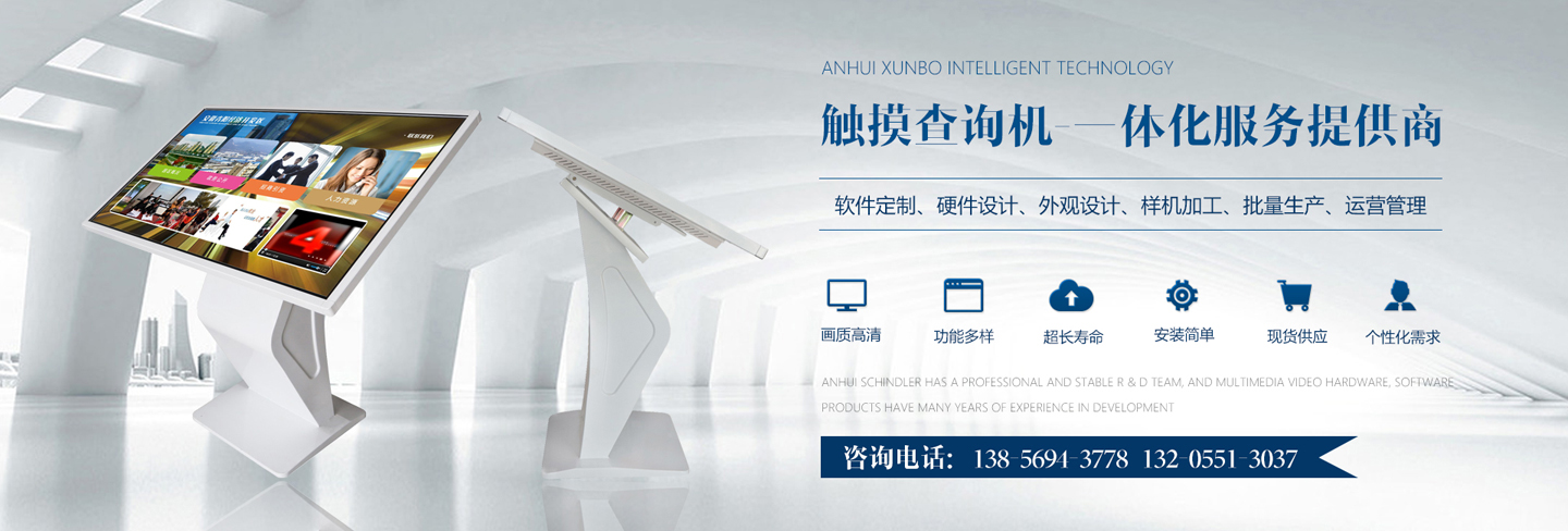 迅博智能 位于中國(guó)科教城---合肥市,和經(jīng)濟(jì)開發(fā)區(qū)與高新區(qū)毗鄰,地址合肥市肥西縣湯口路與皋城路交口人民萬福產(chǎn)業(yè)園一期12棟東側(cè),是一家IT領(lǐng)域的高新技術(shù)企業(yè),全心全意服務(wù)于信息化建設(shè),做專業(yè)的信息化提供商,全力打造信息時(shí)代新模式。 迅博智能 主要從事觸摸屏、觸摸顯示器、OLED柔性觸摸屏、觸摸查詢一體機(jī)系列產(chǎn)品及觸摸顯示互動(dòng)體驗(yàn)軟硬件產(chǎn)品;智能排隊(duì)叫號(hào)、網(wǎng)上預(yù)約排隊(duì)叫號(hào)、安康碼皖事通取號(hào)系統(tǒng);曲面屏、OLED 屏幕、柔性屏、LCD液晶大屏拼接系統(tǒng);落地式、壁掛式單機(jī)版網(wǎng)絡(luò)版室內(nèi)外廣告機(jī)及數(shù)字標(biāo)牌廣告信息發(fā)布系統(tǒng);室內(nèi)外LED電子格柵透明屏、單雙色、全彩電子大屏;各類辦事營(yíng)業(yè)廳:公積金...